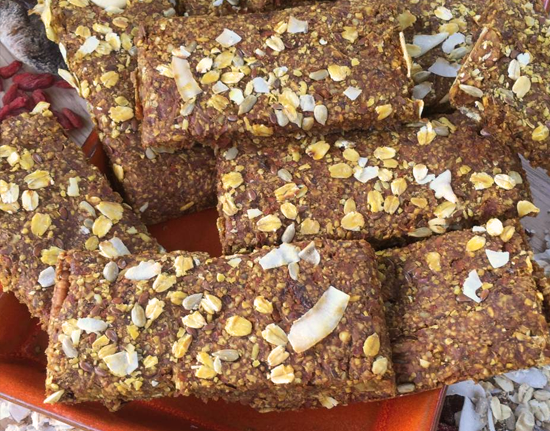 Verdeel het mengsel over kleine muffinbakjes of in een cakevorm en druk het even goed aan. Zet het ca. 40 minuten (muffin bakjes) of 50-55 minuten (cakevorm) in een voorverwarmde oven. Heb je een muesli zonder lijnzaad erin dan kun je de oven gerust op ca. 140-150 graden zetten en hem dan 40 minuten bakken. Na het afkoelen in de koelkast bewaren en dan pas aansnijden.