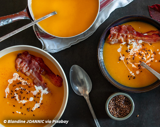 Doe ondertussen wat olie of kokosvet in de pan fruit hierin de ui en het pepertje op een zacht vuur. Doe er wat kurkuma en zeezout bij. Doe alle groentes uit de oven bij de ui en peper. Voeg hier 1.5 liter water bij. Breng dit tegen de kook aan. Knijp de knoflookbol leeg in de soep. Haal de tijm van de takjes en voeg dit bij de soep. Breng het op smaak (gistvrije) bouillon. Serveer eventueel met een paar sneetjes stokbrood.
