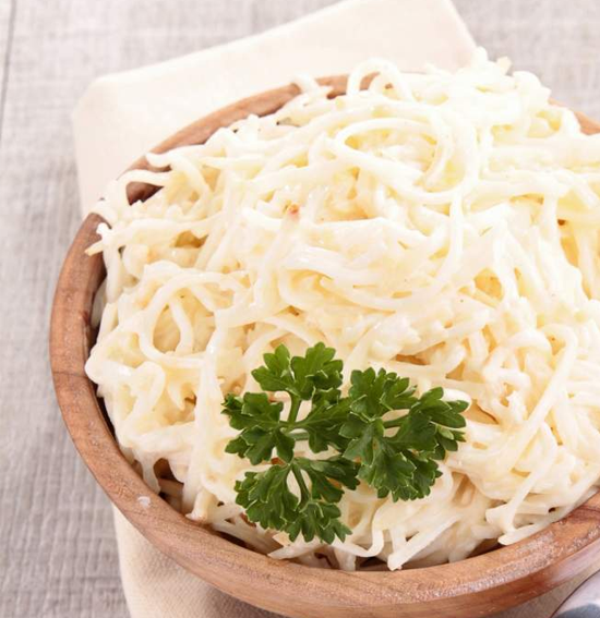 Schil de selderijknol en maak er met een spiralizer dunne ‘spaghetti’ van (je kunt uiteraard ook een mandoline of keukenrasp gebruiken, snijden met een mes kan natuurlijk ook, maar dan ben je wel even bezig). Doe er direct wat citroensap door anders verkleurt het snel. Knip of snijd de spaghetti slierten eventueel nog wat korter. Je kunt het rauw verwerken maar ik vind het lekker om het een paar minuten te blancheren. Breng dan een pan water aan de kook, doe de selderij ‘spaghetti’ erin en blancheer ze kort. Giet het water af, spoel ze af en laat ze uitlekken en afkoelen. Maak de selderij aan met de hieronder genoemde ingrediënten. Voeg naar eigen smaak iets meer van deze ingrediënten toe.